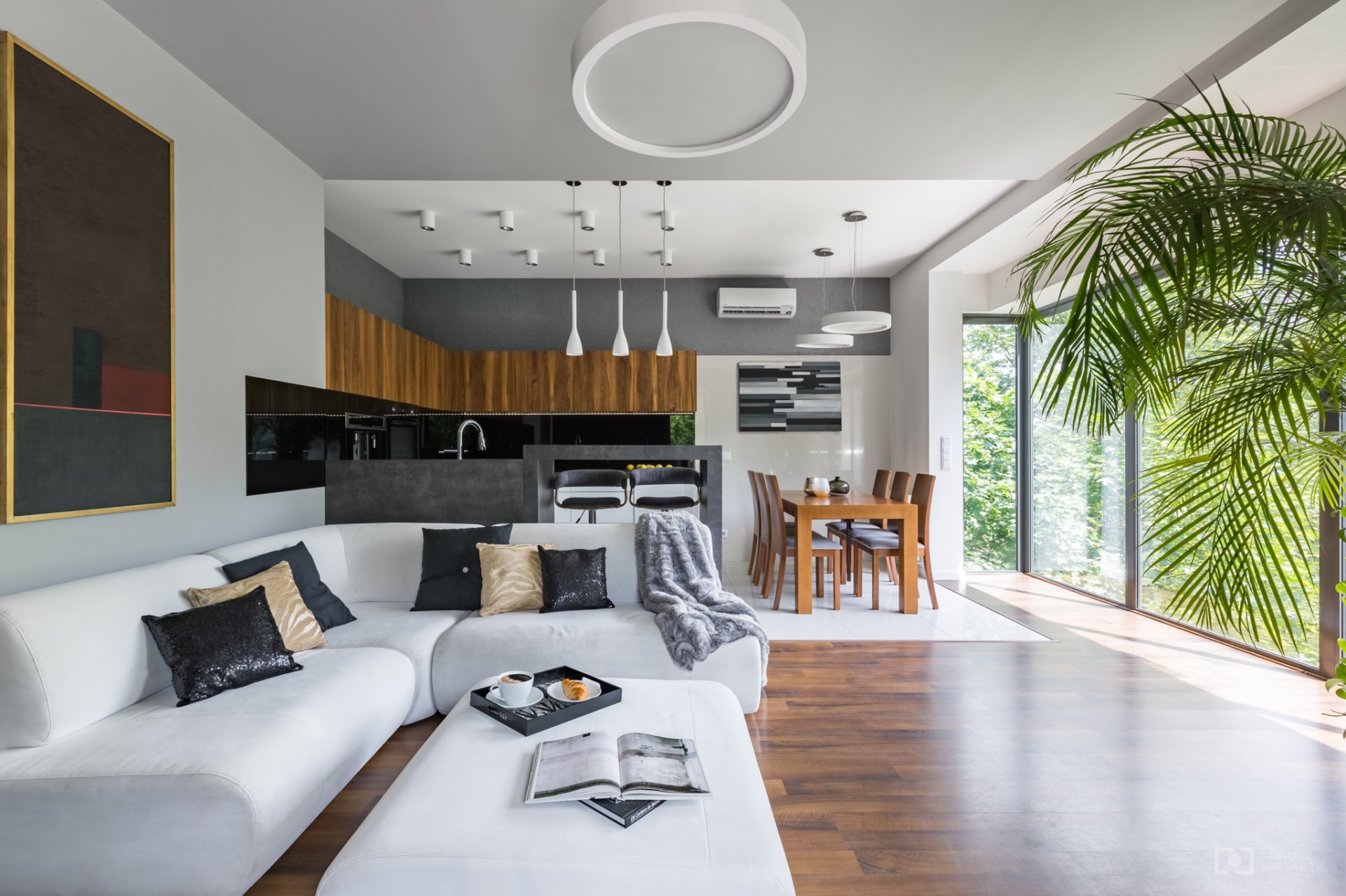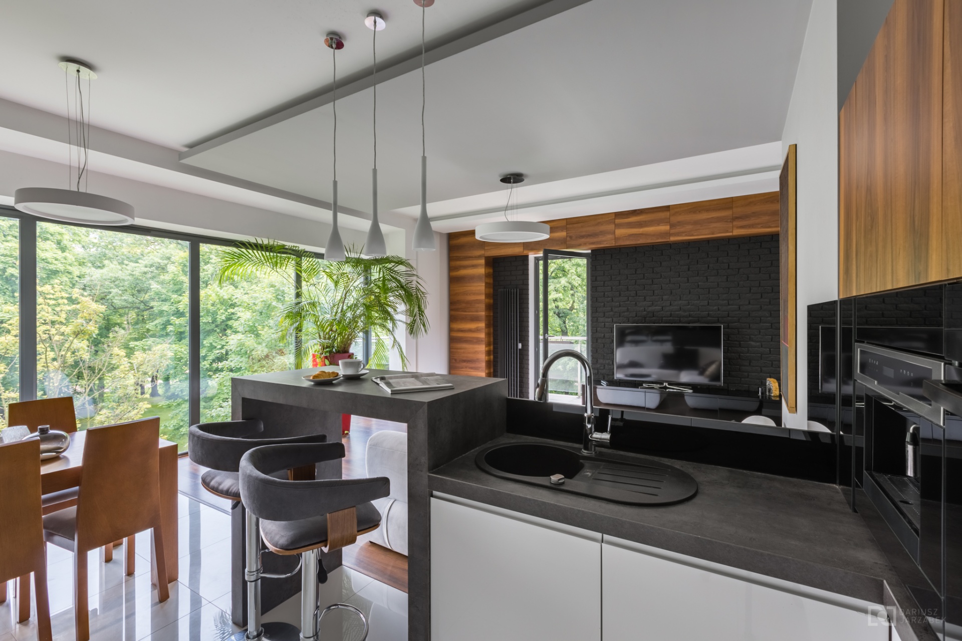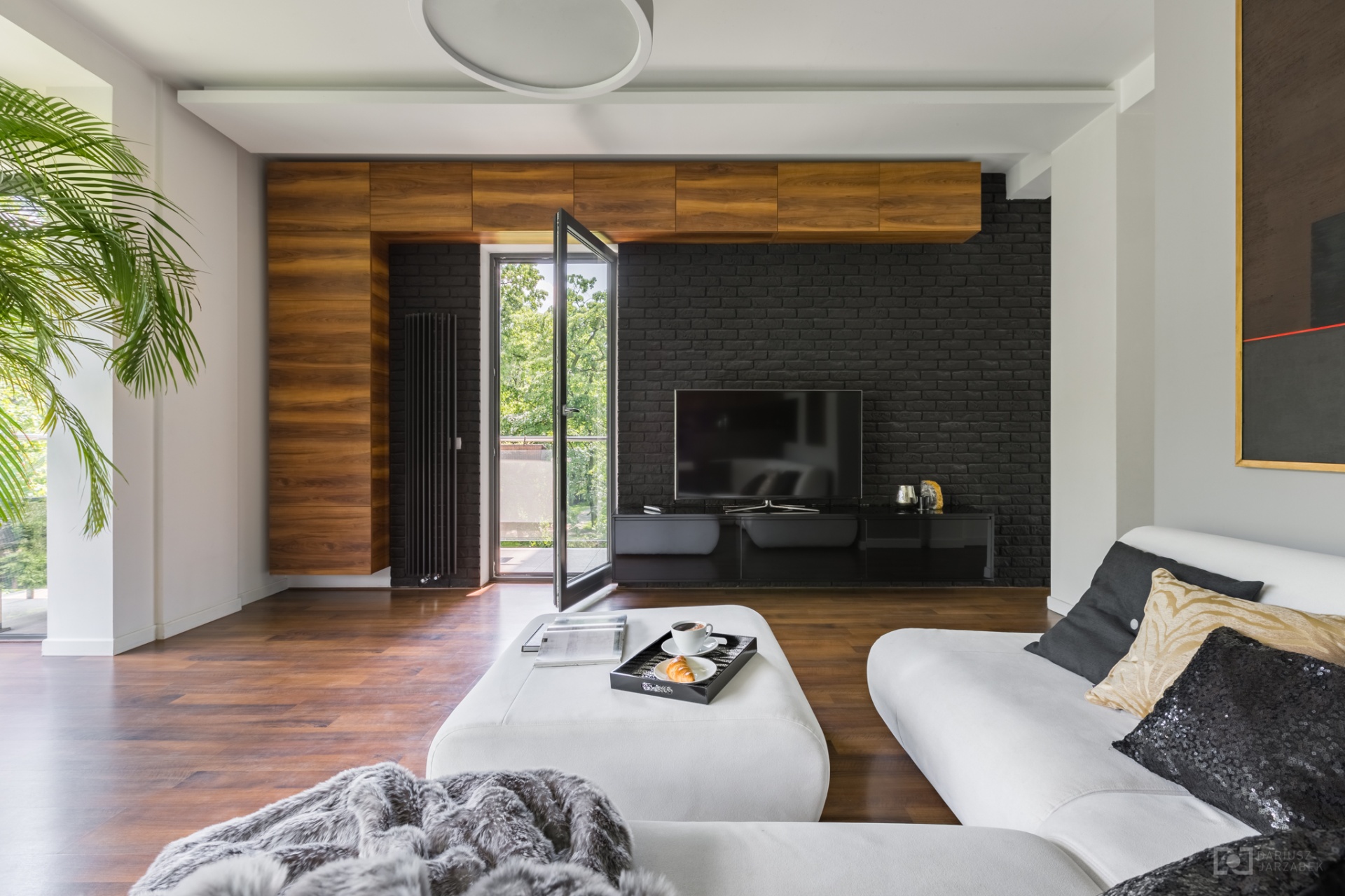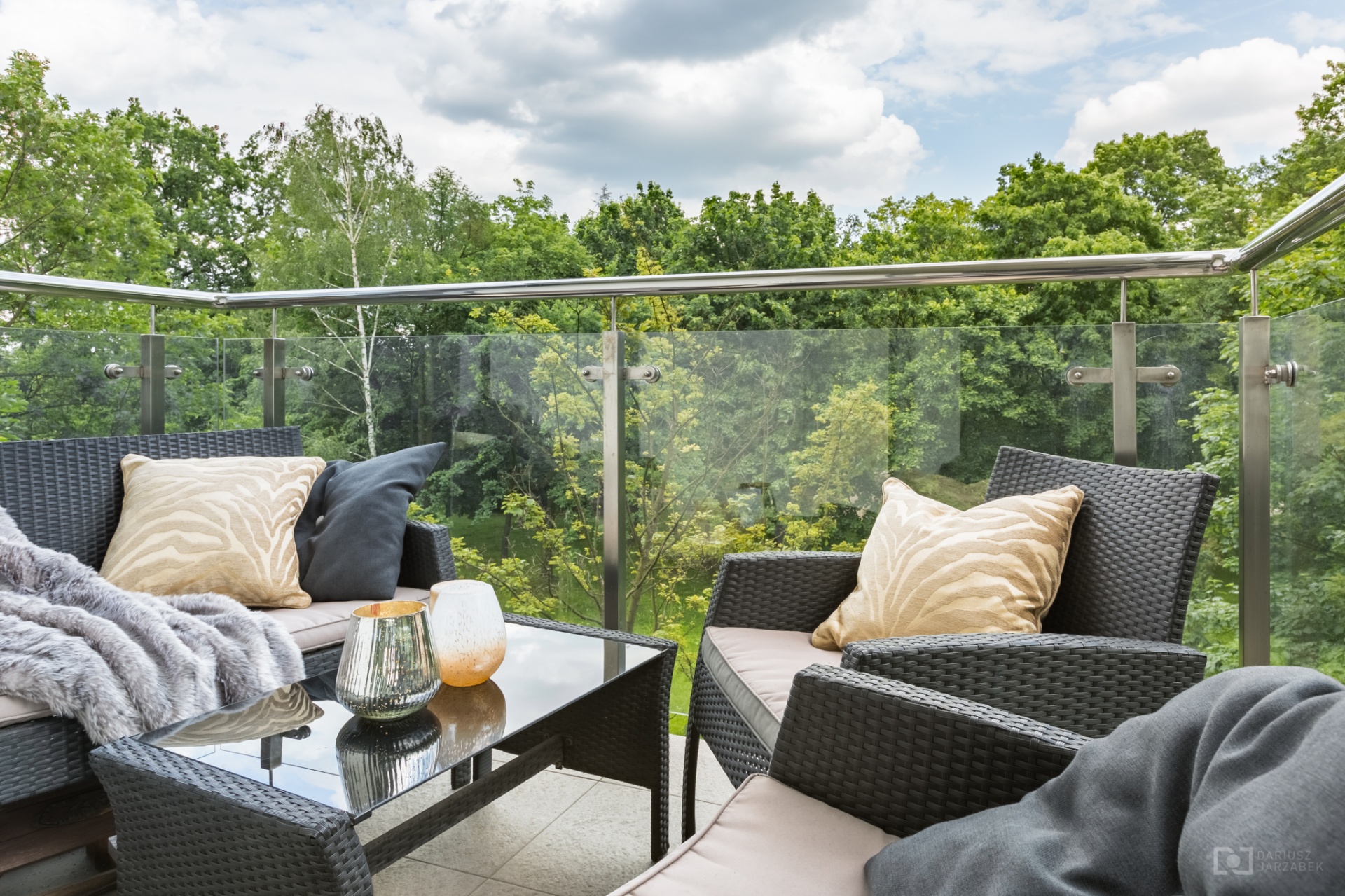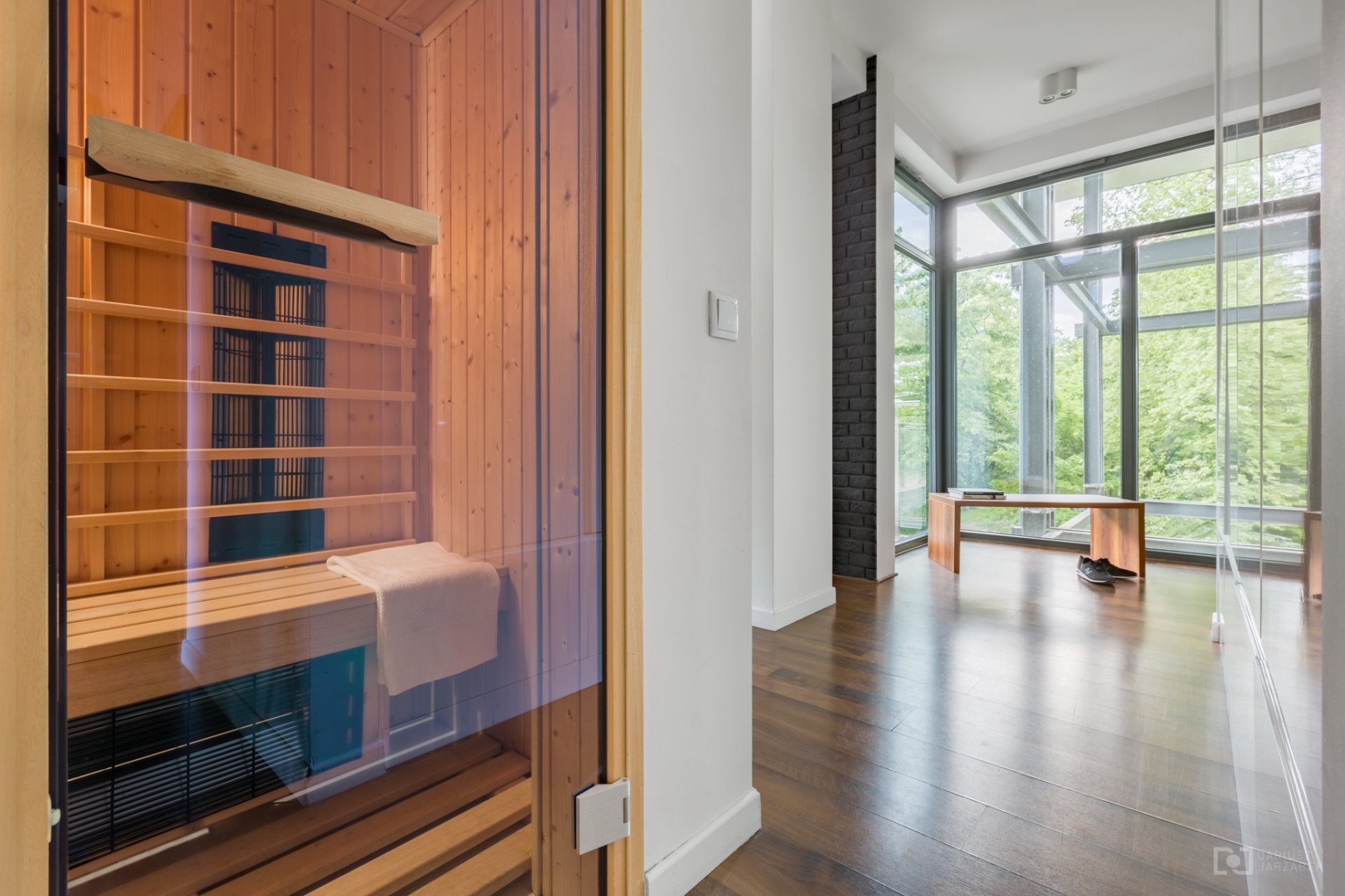 Upscale apartment, located just outside the center in the intimate suroundings of Helenów Park. Located in the a glass block that has only 10 apartments, deigned in accordance to the latest trends, in consultation with an interior designer. It consists of a glazed living room with kitchenette with panoramic views of the Park Helenów, master bedroom, bedroom, bathroom, sauna and a wide terrace.