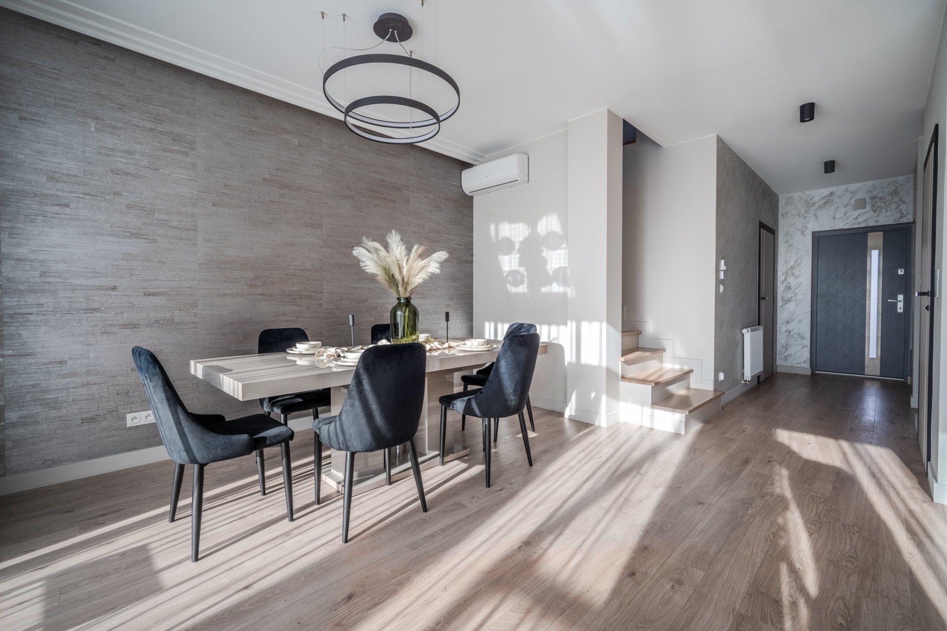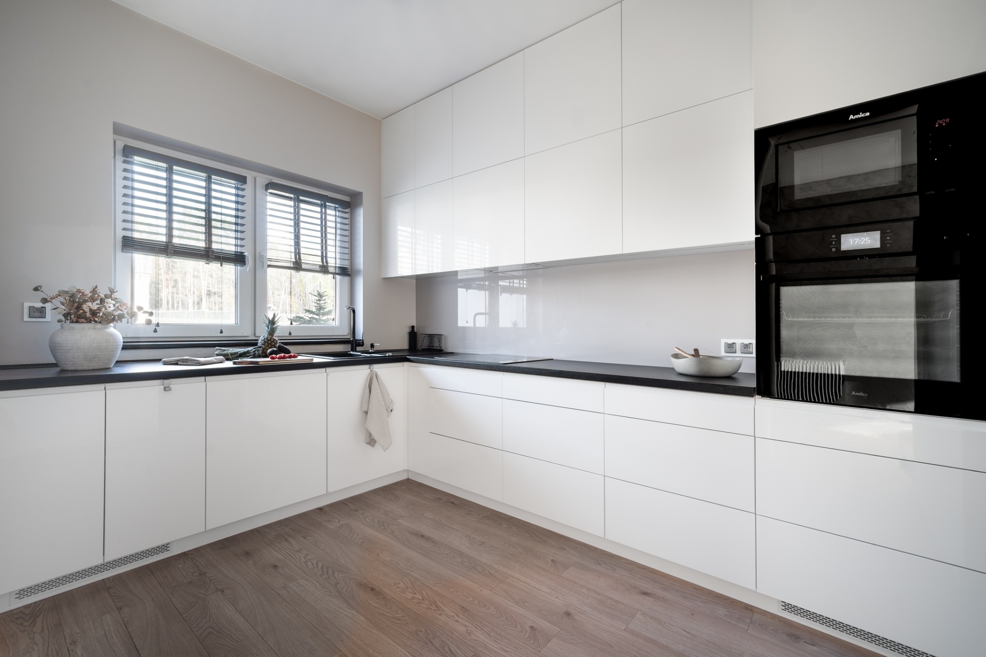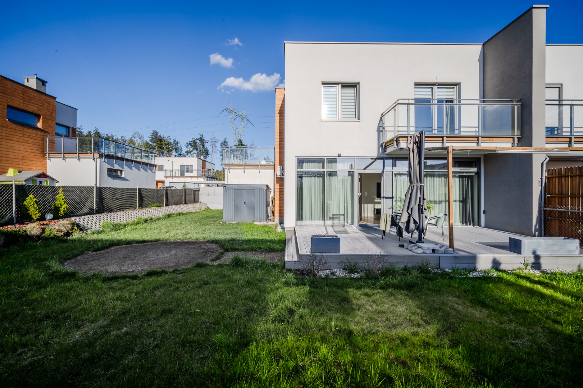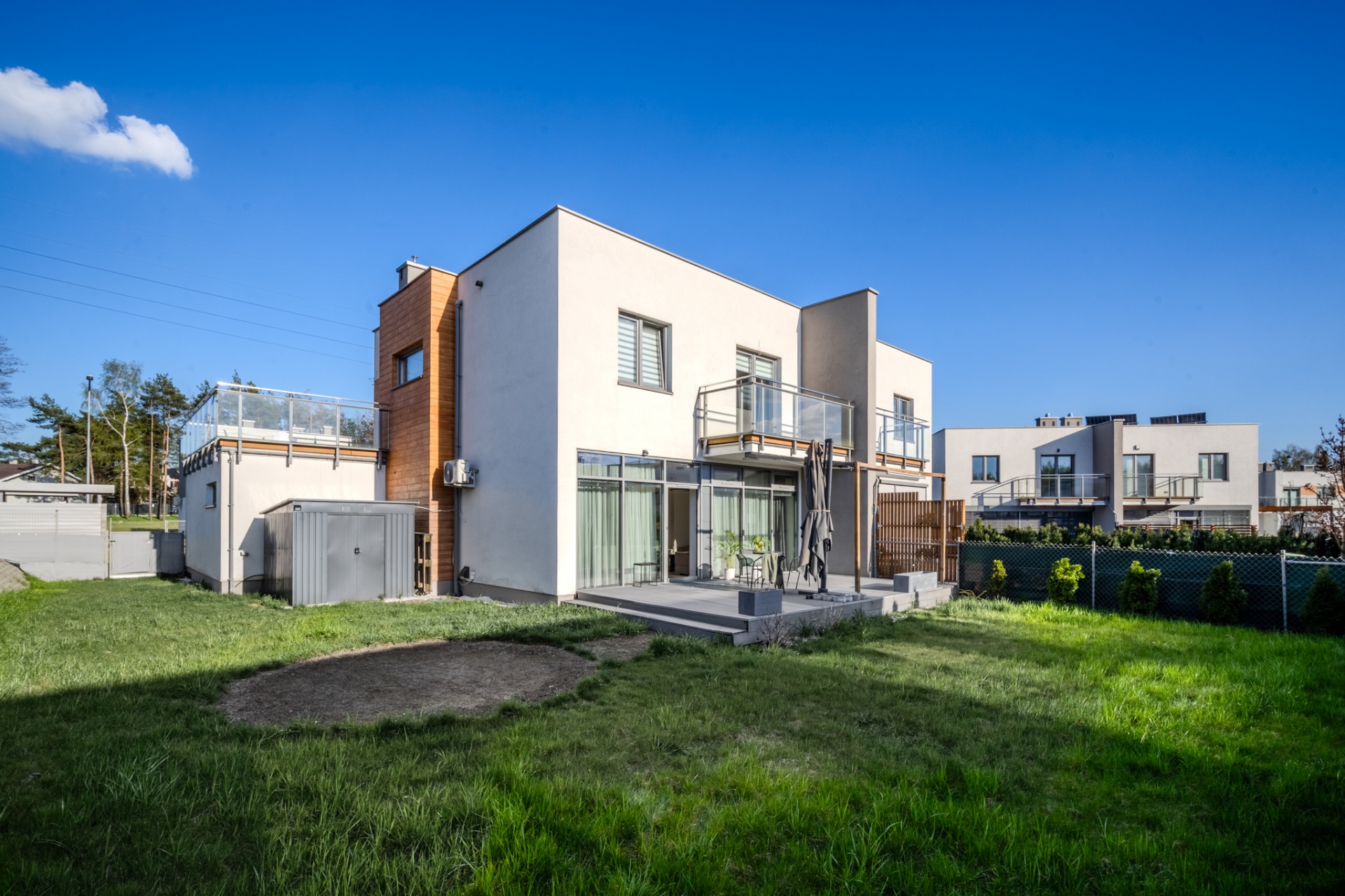 Na działce o łącznej powierzchni 477m2 znajdują się liczne nasadzenia, a dzięki wbudowanemu systemowy nawadniania, dbanie o ogród staje się niezwykle łatwe. Powierzchnia ogrodu pozwala na rozstawienie sporego basenu bądź zbudowanie dodatkowej altanki, a wszystkie akcesoria ogrodowe bez problemu zmieszczą się w domku narzędziowym który usytuowany jest z boku budynku. Na górny poziom składają się trzy pokoje, pomieszczenie gospodarcze z pralnią oraz spora łazienka. Główna sypialnia posiada wyjście na balkon z widokiem na ogród oraz zachodnią ekspozycją gwarantującą piękne zachody słońca oraz dobre nasłonecznienie w ciągu dnia. Kolejnym pomieszczeniem jest pokój gościnny z wyjściem na przestronny taras ze wschodnią ekspozycją, na którym zmieści się zestaw wypoczynkowy oraz jacuzzi ogrodowe. Stylowa łazienka została wyposażona zarówno w prysznic jak i wannę dając możliwość wyboru miedzy szybkim porannym prysznicem a długimi wieczornymi kąpielami. Wnętrze domu zostało urządzone z dbałością o detale- każdy element prezentuje jednolitą, elegancką stylistykę. Wysokiej jakości panele firmy Meister nadają przestrzeni ciepły, naturalny charakter, a użyte we wnętrzu tapety podkreślają wyrafinowany klimat pomieszczeń. Całości dopełnia designerskie oświetlenie, podkreślające wykończenie i tworzące przytulną atmosferę. Dom jest w pełni wyposażony w meble oraz sprzęty RTV i AGD, dzięki czemu jest gotowy do wprowadzenia.