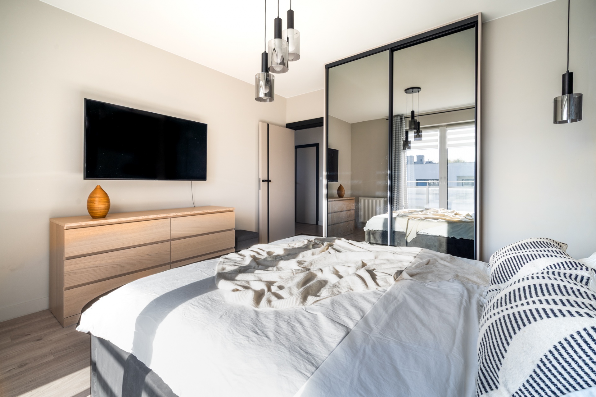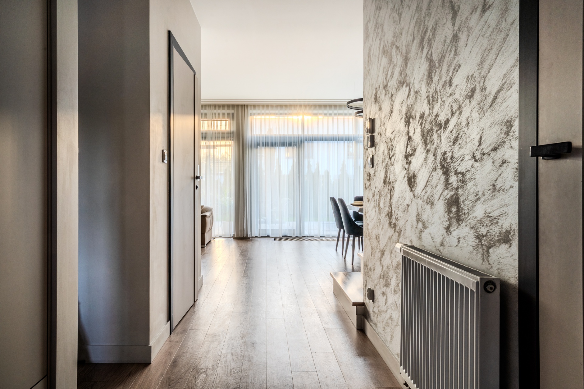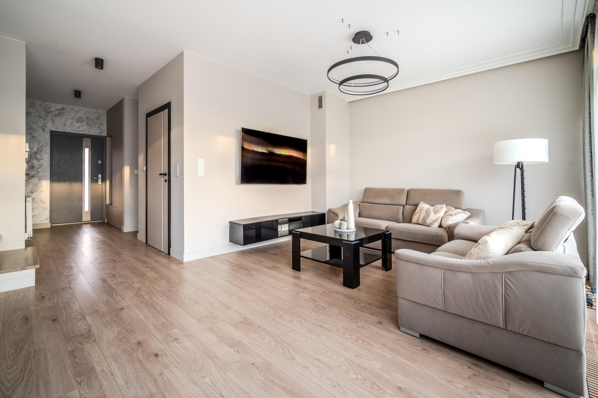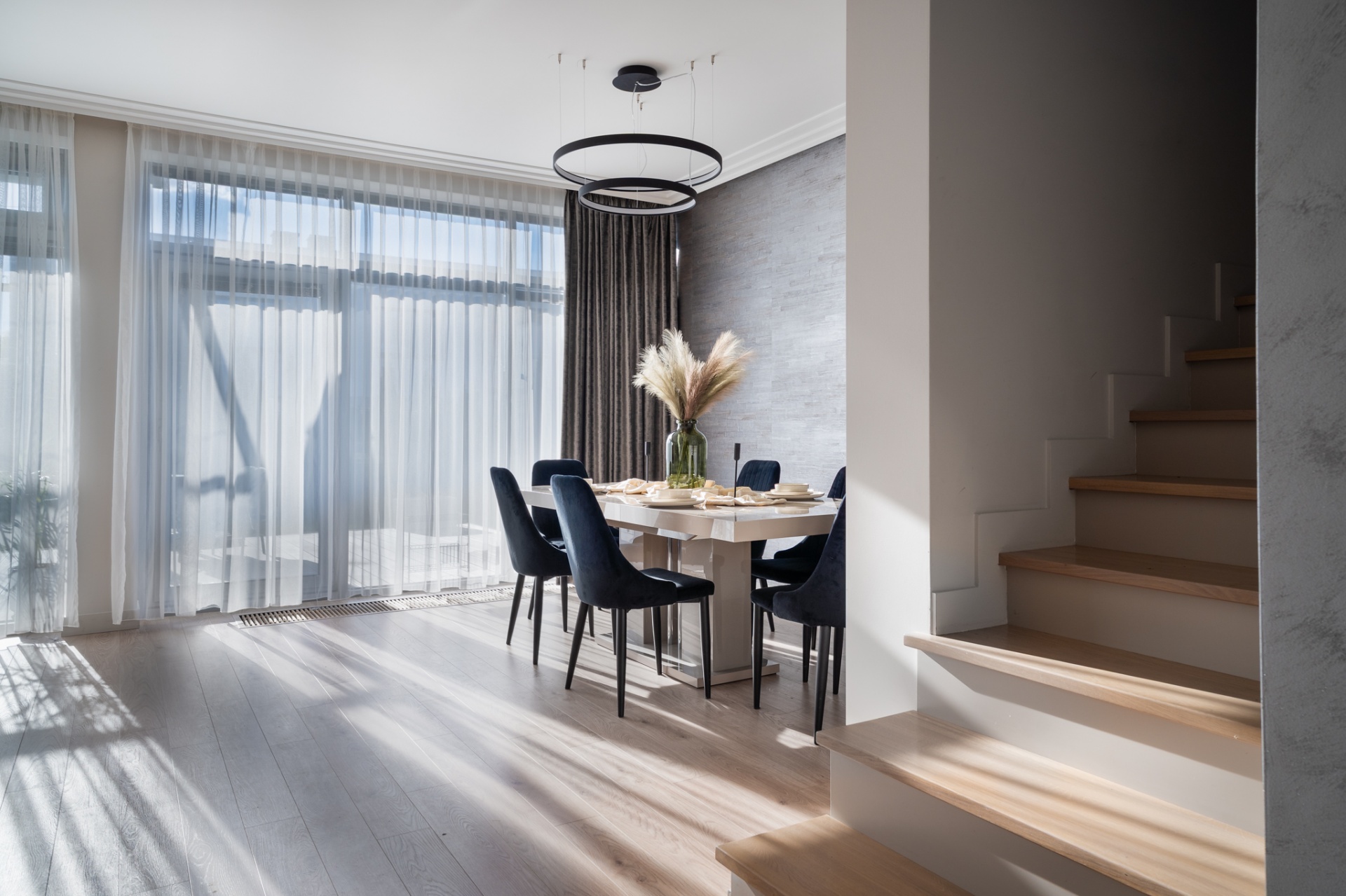 Na działce o łącznej powierzchni 477m2 znajdują się liczne nasadzenia, a dzięki wbudowanemu systemowy nawadniania, dbanie o ogród staje się niezwykle łatwe. Powierzchnia ogrodu pozwala na rozstawienie sporego basenu bądź zbudowanie dodatkowej altanki, a wszystkie akcesoria ogrodowe bez problemu zmieszczą się w domku narzędziowym który usytuowany jest z boku budynku. Na górny poziom składają się trzy pokoje, pomieszczenie gospodarcze z pralnią oraz spora łazienka. Główna sypialnia posiada wyjście na balkon z widokiem na ogród oraz zachodnią ekspozycją gwarantującą piękne zachody słońca oraz dobre nasłonecznienie w ciągu dnia. Kolejnym pomieszczeniem jest pokój gościnny z wyjściem na przestronny taras ze wschodnią ekspozycją, na którym zmieści się zestaw wypoczynkowy oraz jacuzzi ogrodowe. Stylowa łazienka została wyposażona zarówno w prysznic jak i wannę dając możliwość wyboru miedzy szybkim porannym prysznicem a długimi wieczornymi kąpielami. Wnętrze domu zostało urządzone z dbałością o detale- każdy element prezentuje jednolitą, elegancką stylistykę. Wysokiej jakości panele firmy Meister nadają przestrzeni ciepły, naturalny charakter, a użyte we wnętrzu tapety podkreślają wyrafinowany klimat pomieszczeń. Całości dopełnia designerskie oświetlenie, podkreślające wykończenie i tworzące przytulną atmosferę. Dom jest w pełni wyposażony w meble oraz sprzęty RTV i AGD, dzięki czemu jest gotowy do wprowadzenia.