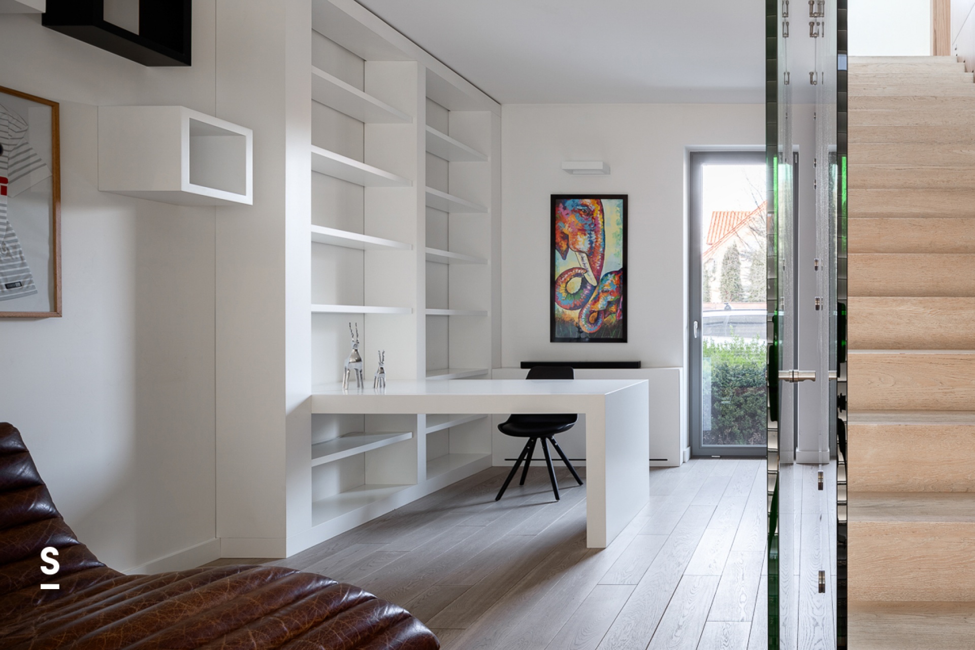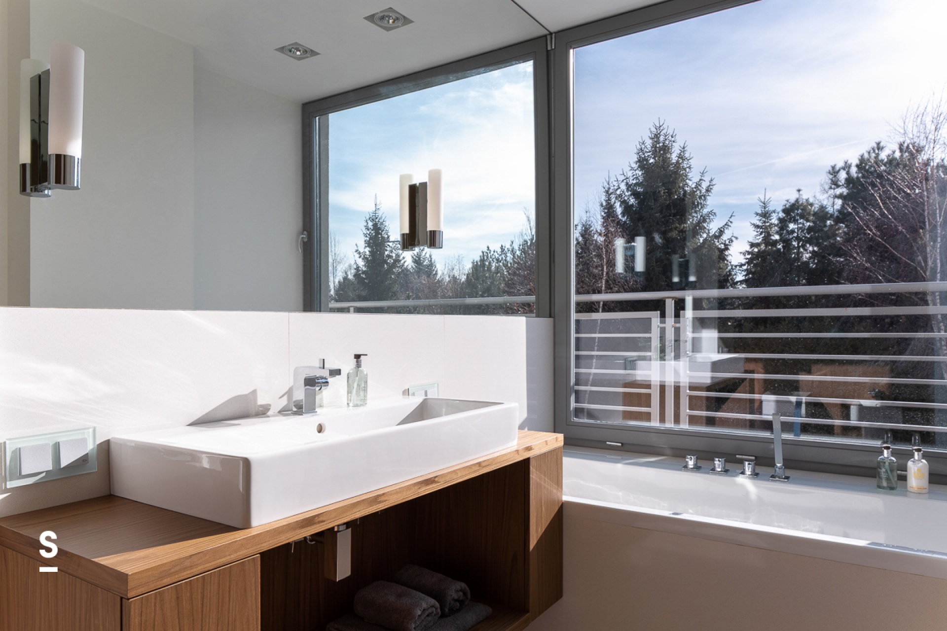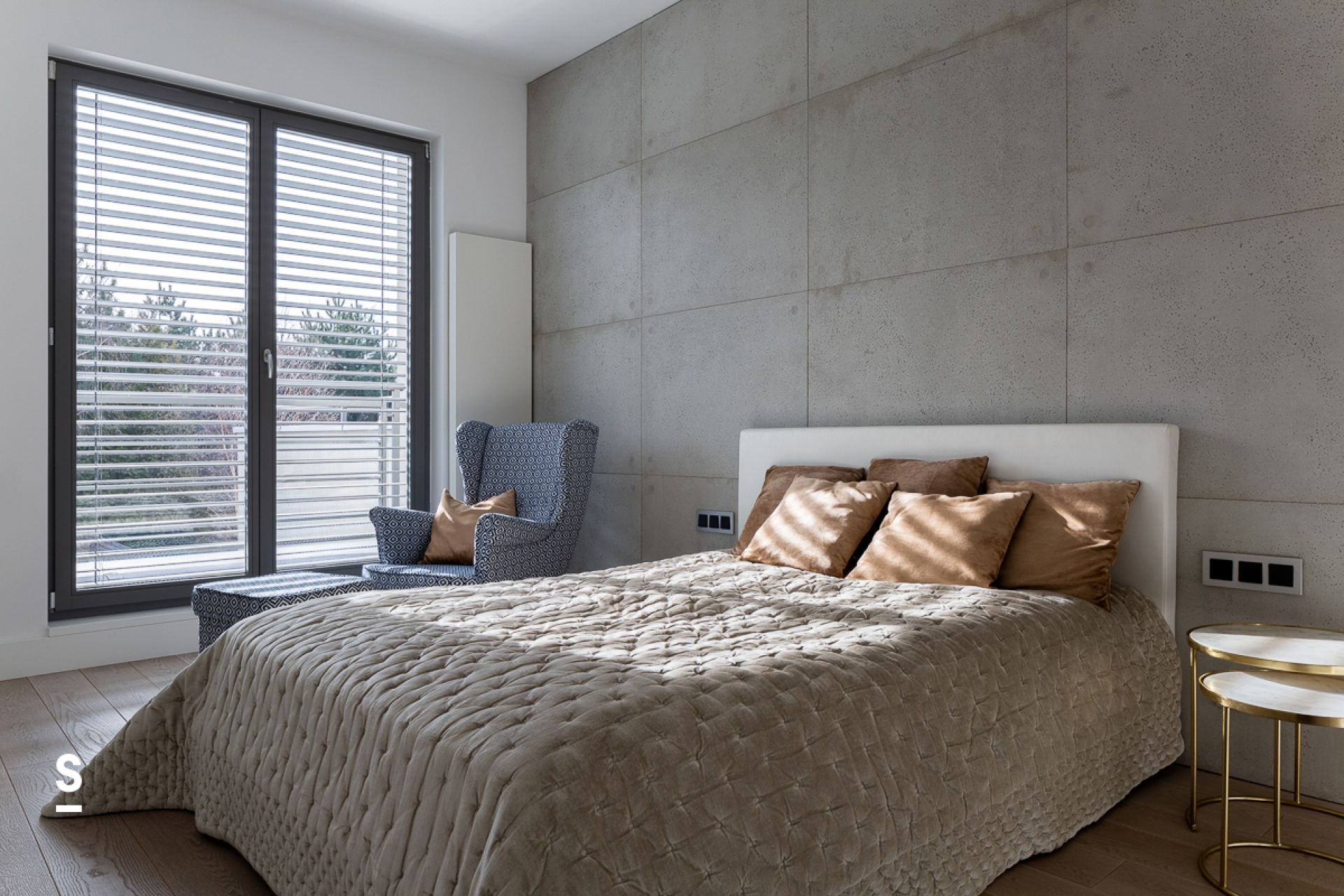 Prezentowany dwu-poziomowy dom w stanie deweloperskim, ma pięć pokoi, 249 m² powierzchni i znajduje się na kameralnym, zamkniętym osiedlu. Niesamowita architektura w stylu Bauhaus oraz przestrzeń, którą od pierwszego kroku daje się odczuć imponującymi drzwiami wejściowymi o wysokości 2,9 m. Już na wejściu wita zieleń ogrodu, metaforycznie wchodząca do wnętrza, przez całkowicie przeszklony tył domu. Parter to harmonijna przestrzeń wspólna, na którą się składa salon z kominkiem, otwarta kuchnia, łazienka oraz pokój idealnie nadający się na home office. Górny poziom to trzy sypialnie z osobnymi łazienkami oraz dużym tarasem, który ciągiem łączy całe piętro.