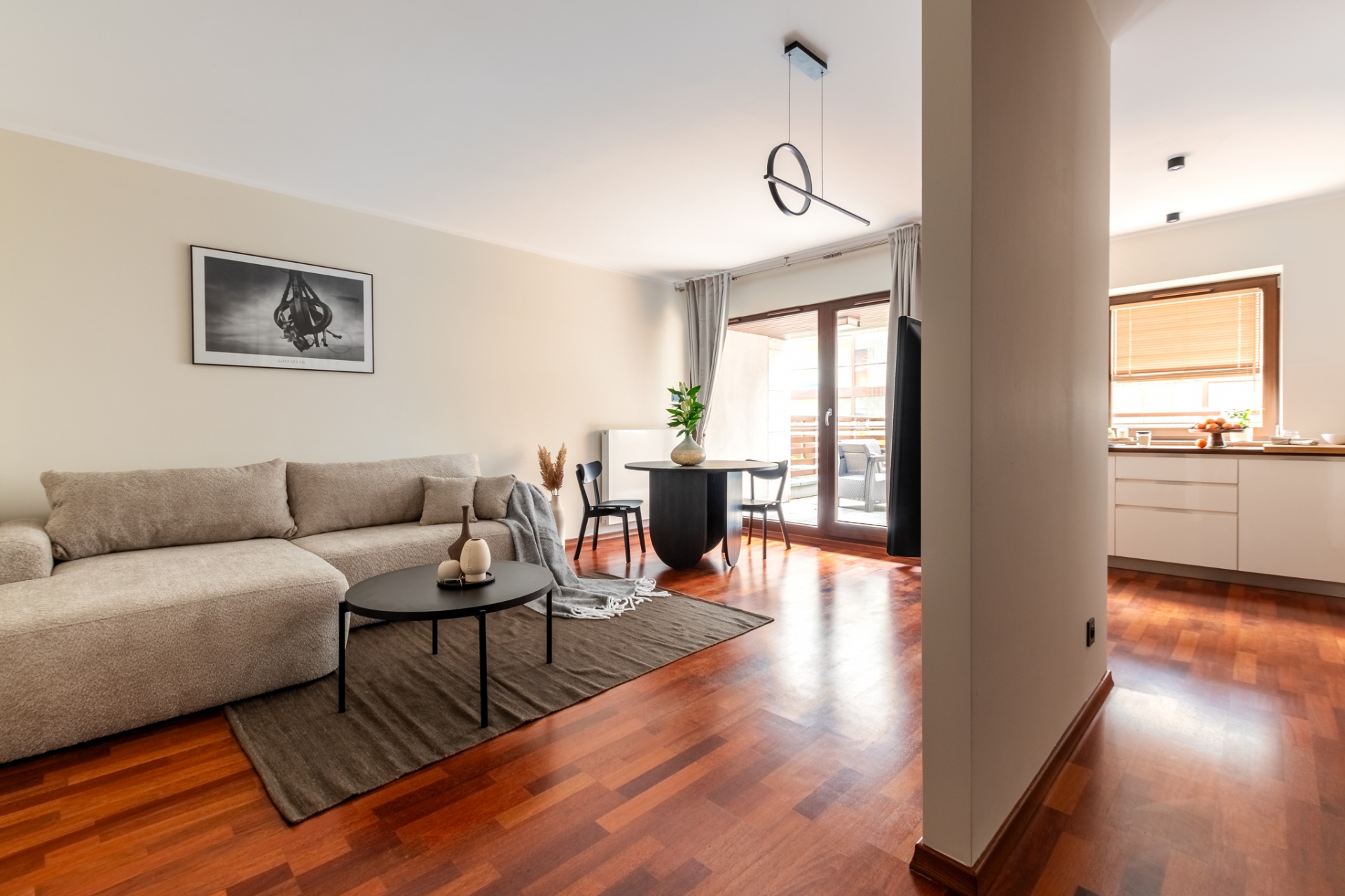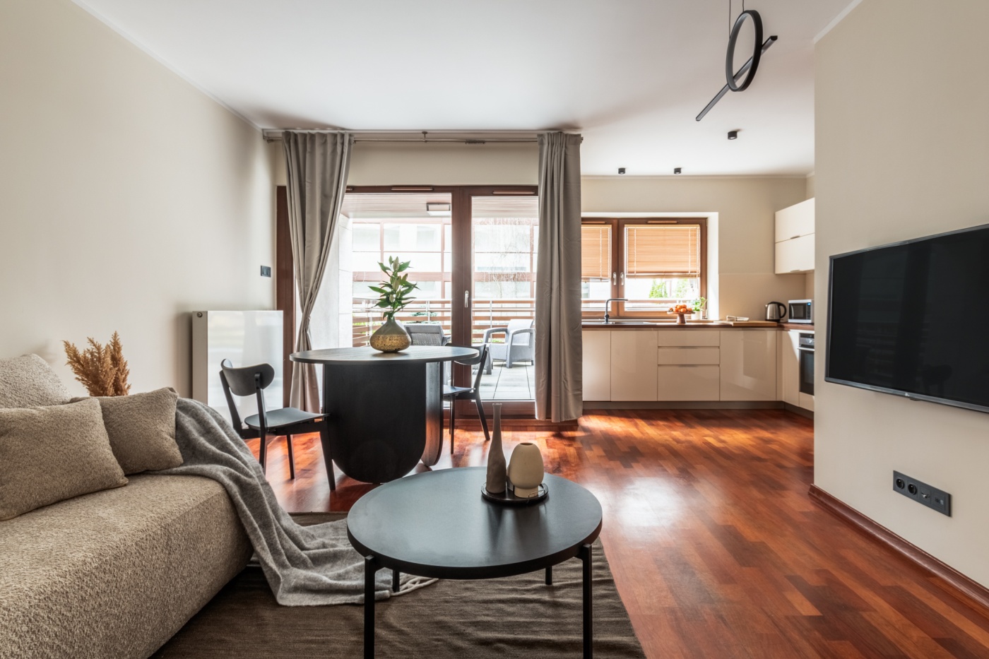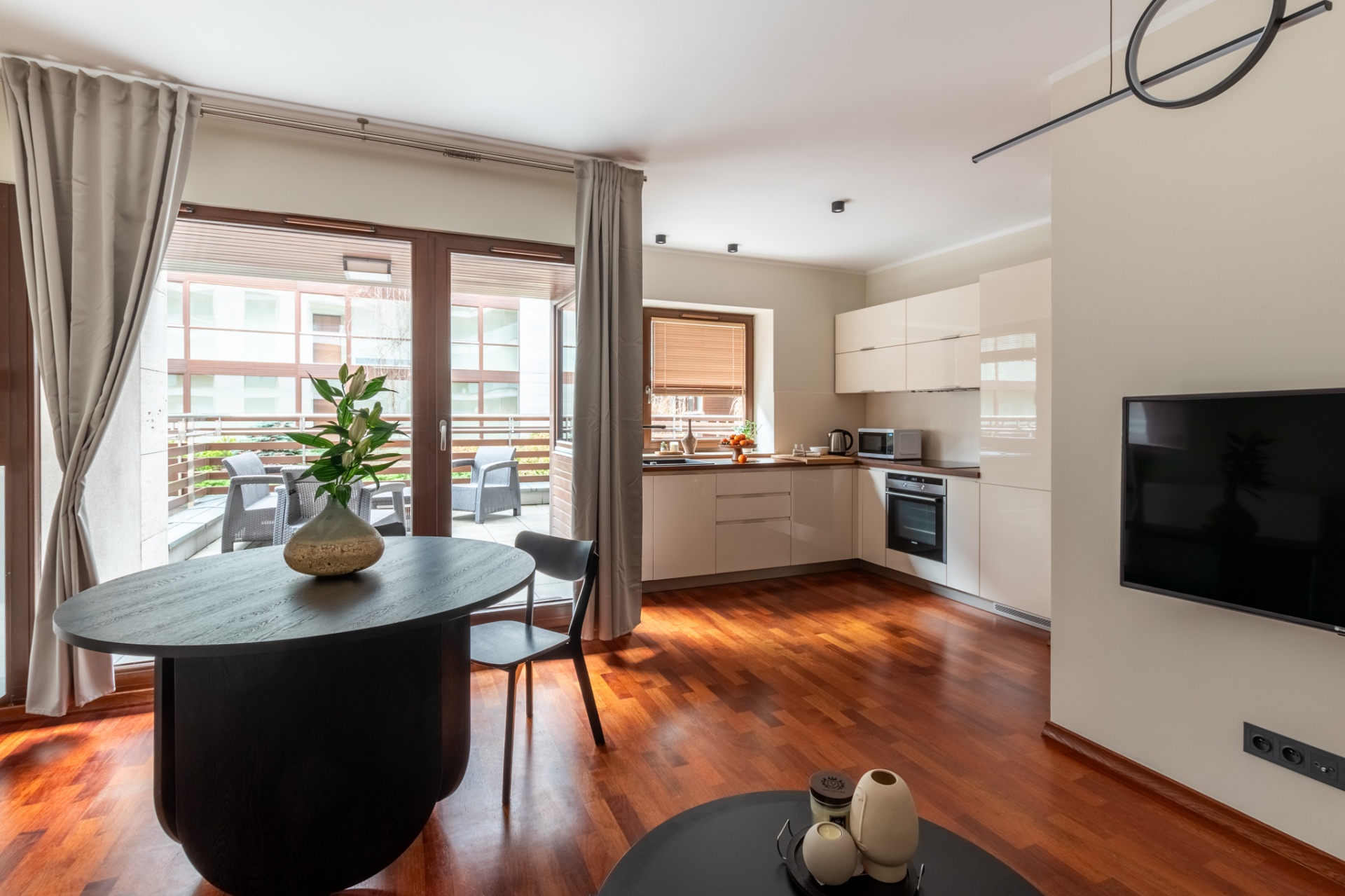 Czeka na Ciebie świeżo po częściowym remoncie, apartament o powierzchni 48,05 m² składający się salonu z aneksem kuchennym, sypialni oraz łazienki, jest on w pełni umeblowany i wyposażony. Otwarty plan, oraz ciepła skandynawska stylistyka zapewnią Ci odpowiedni komfort życia. Niewątpliwym atutem mieszkania jest obszerny taras z wyjściem na ogród. Do mieszkania przynależy miejsce parkingowe, znajdujące się w garażu. Solaris Park znajduje się w bezpośrednim sąsiedztwie parku Sienkiewicza. Jedyny tego rodzaju apartamentowiec posiada do dyspozycji mieszkańców recepcję, basen, siłownię oraz saunę. Doskonała lokalizacja, szczególnie dla osób ceniących uroki życia w centrum miasta, w odległości kilkuset metrów mamy dostęp do ul. Piotrkowskiej z bogatą ofertą rozrywkowo-gastronomiczną, w bezpośrednim sąsiedztwie mamy również Dworzec Łódź-Fabryczna oraz Nowe Centrum Łodzi.