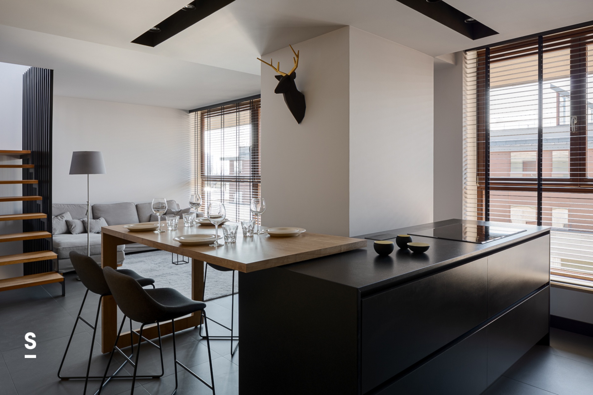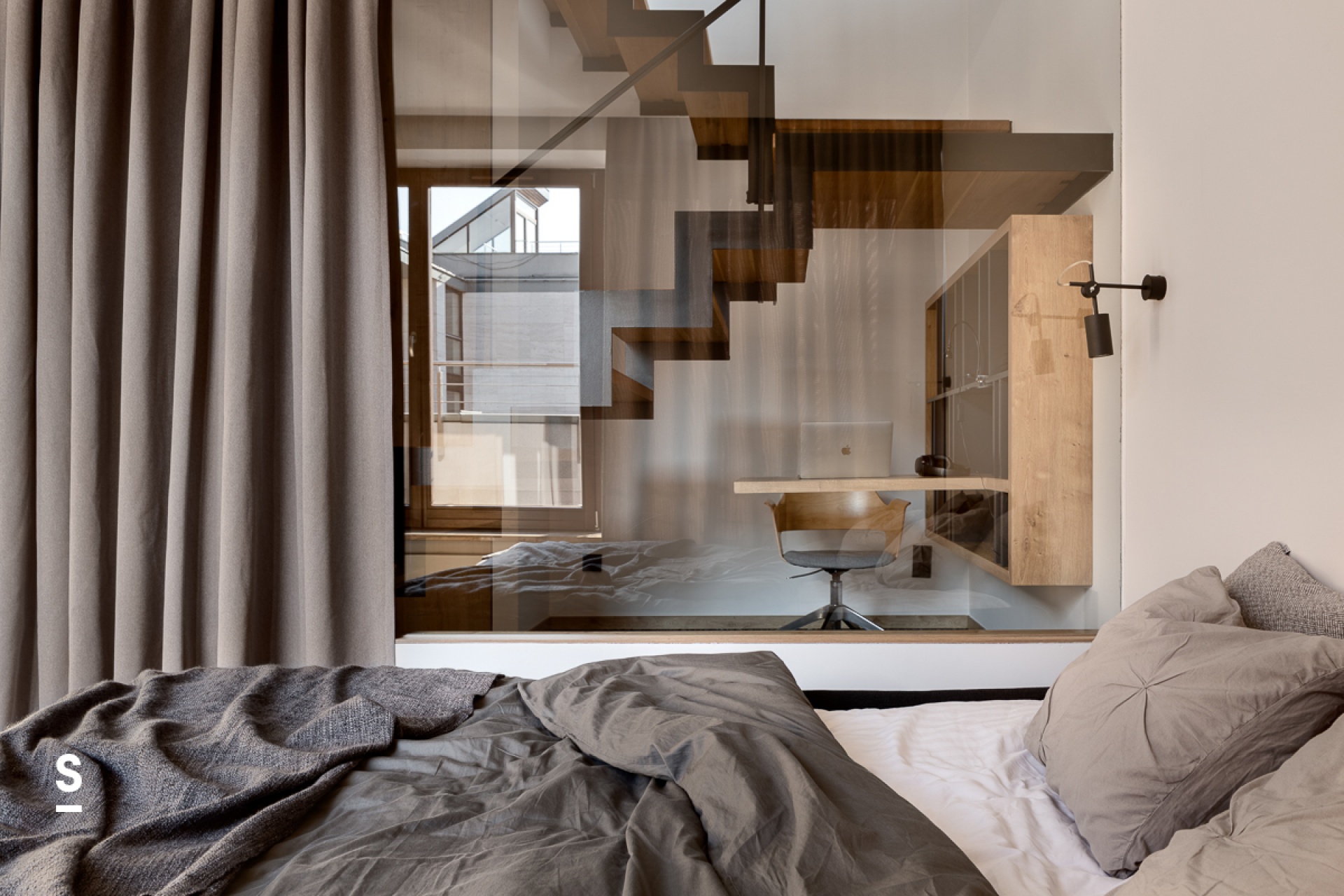 Oferowany dwu- poziomowy, apartament to idealna fuzja elegancji z funkcjonalnością. Górny poziom to otwarty salon z nowocześnie zaprojektowaną kuchnią, natomiast dolna część prywatna to dwie sypialnie, wydzielona strefa home office, łazienka oraz WC. O unikatowości oferty stanowi wspomniany wcześniej taras z którego rozpościera się widok na Łódź, szczególnie dostarczający niesamowite wrażenia wieczorem. Dodatkowy atut stanowi duży taras na dolnym poziomie z widokiem na park Sienkiewicza. Do dyspozycji najemcy pozostaje, także parking w podziemnym garażu.